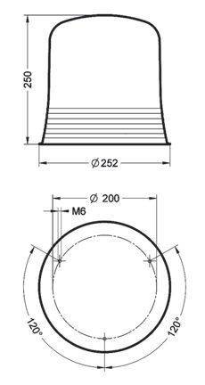 ø 200mm belső átmérő , ø 252mm külső átmérő, 250mm magas (Lásd a mellékelt műszaki ábrán.)