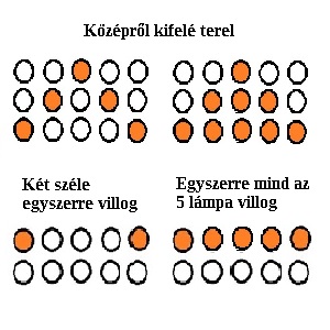 • működés: terelés jobbra, balra, középről kifelé, a két széle egyszerre villog, mind az 5 lámpa egyszerre villog.