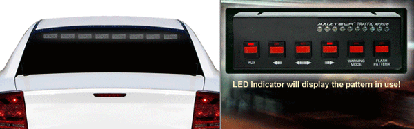 -beépített figyelmeztető és forgalom irányterelő villogási módok
